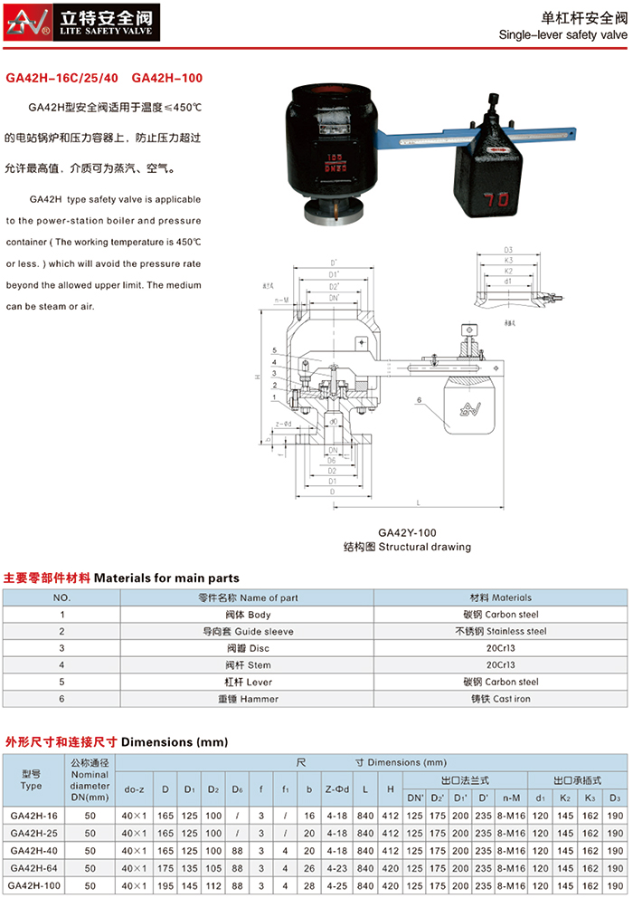 > GA42H型单杠杆安全阀