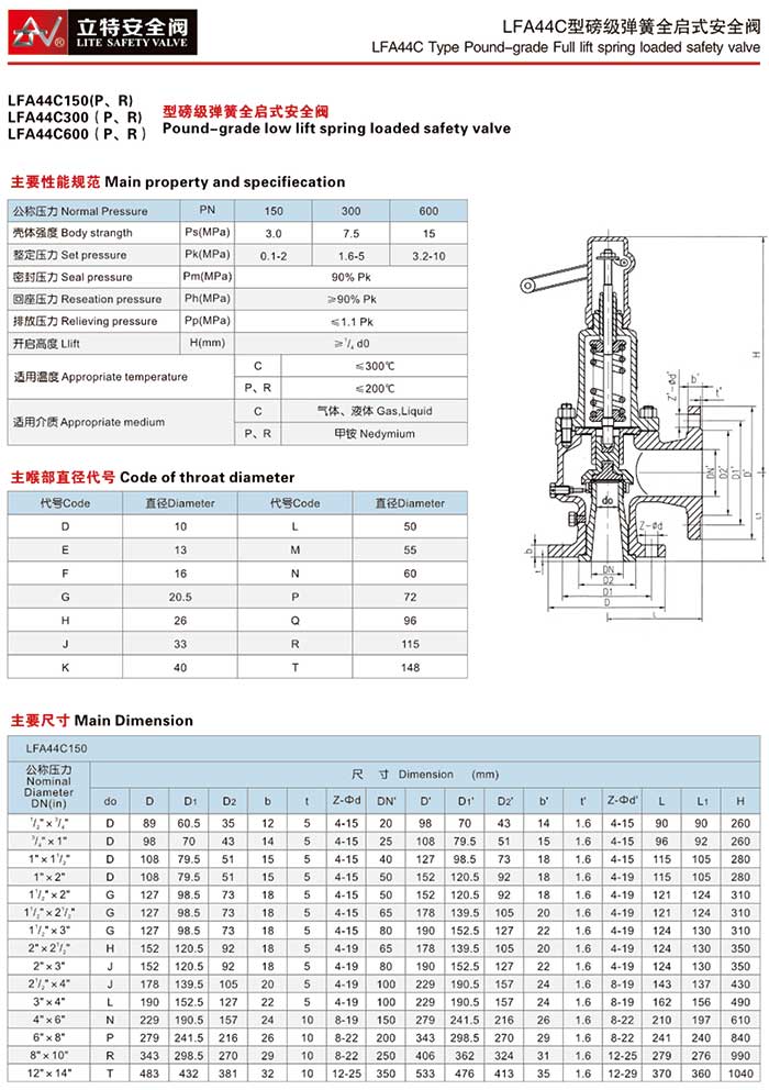 产品名称:LFA44C型磅级弹簧全启式安全阀