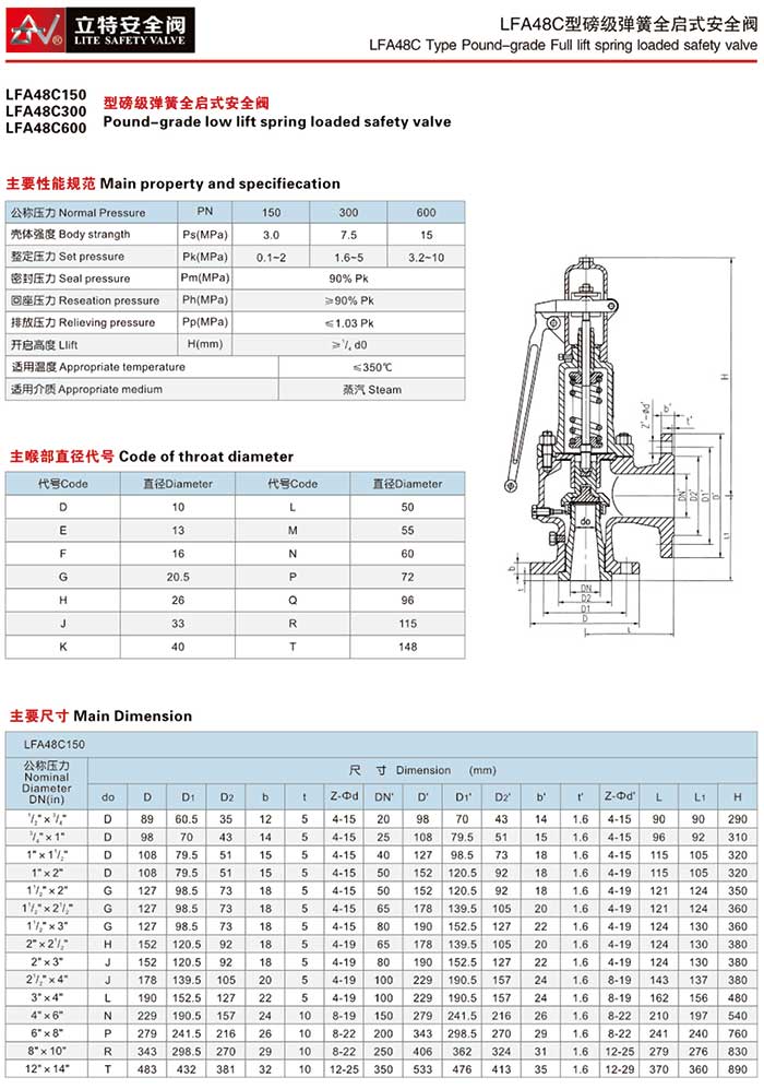 产品名称:LFA48C型磅级弹簧全启式安全阀