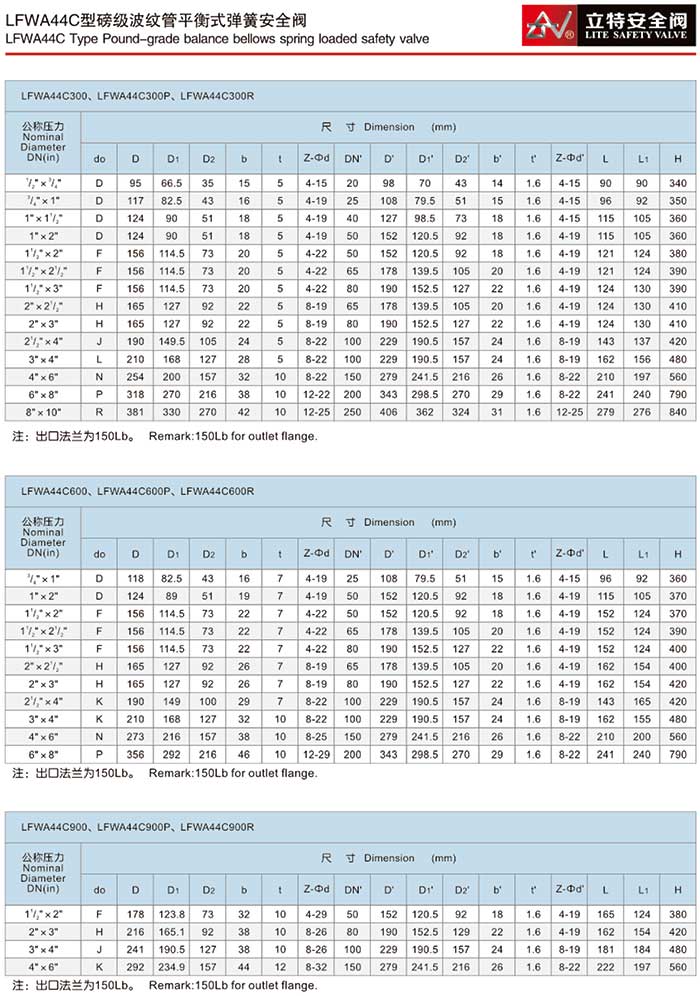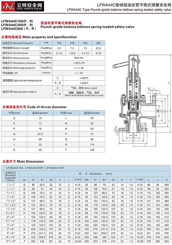 > LFWA44C型磅级波纹管平衡式弹簧安全阀